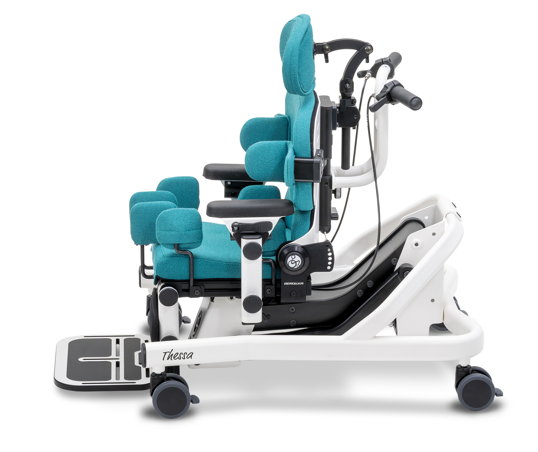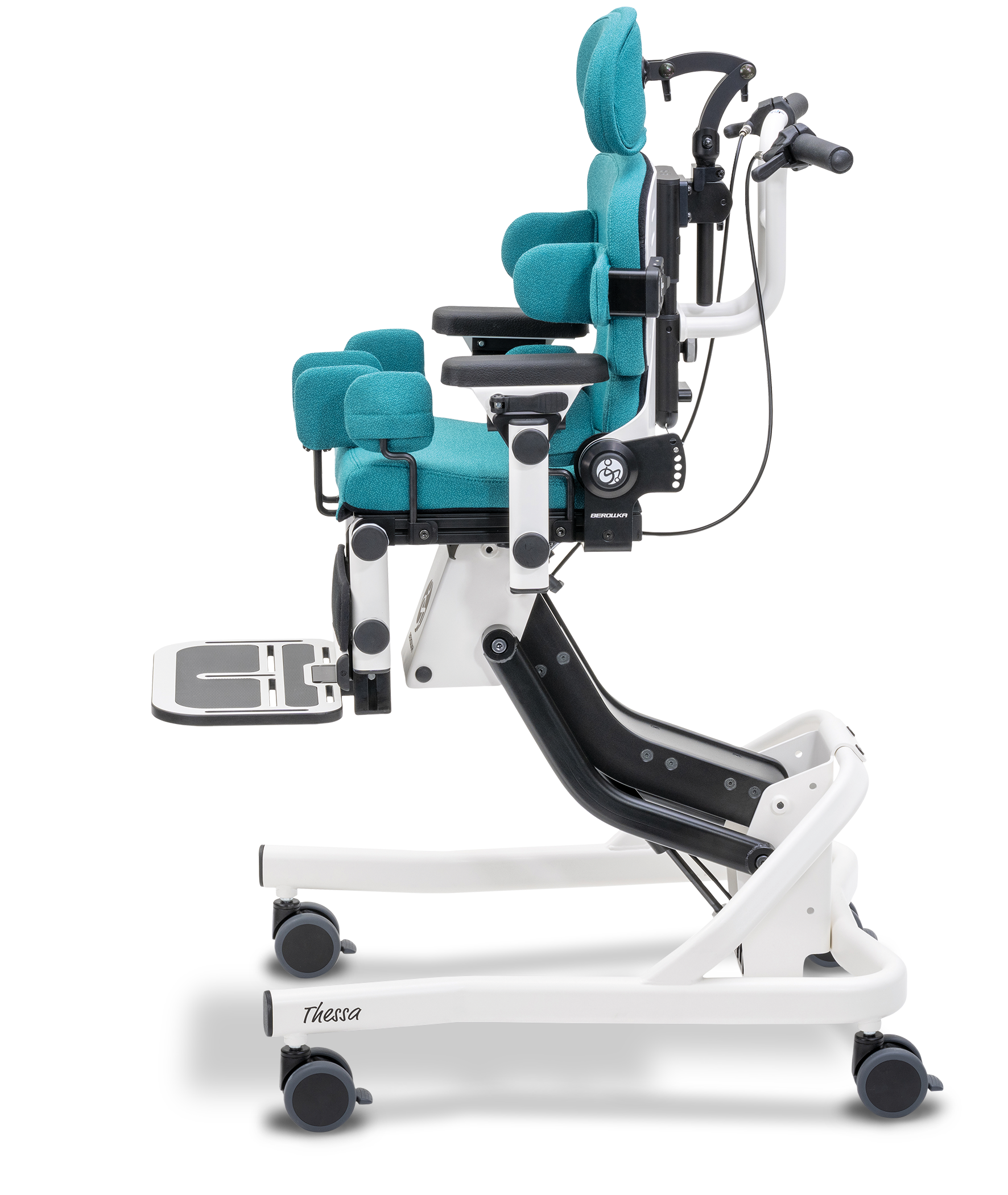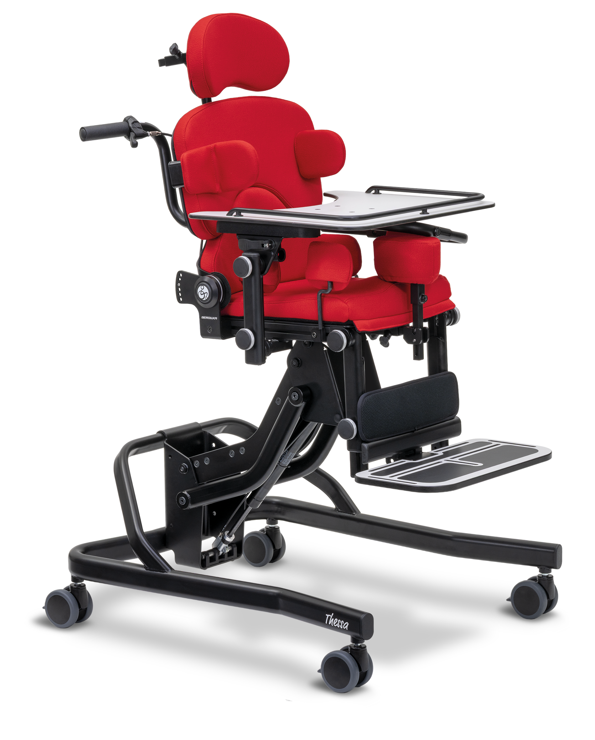 Stabilität und Aufrichtung für mehr Aktivität und Teilhabe: Der neue Therapiestuhl Thessa (Therapeutical Seating System Application) unterstützt und sichert eine stabile Sitzposition über das gesamte Wachstum des Kindes hinweg und ist durch die High-Low-Funktion in der Höhe einstellbar. Der modulare Aufbau und die stufenlos einstellbaren Körperstützen ermöglichen höchst individuelle Anpassungen an die aktuellen Bedürfnisse des Kindes.